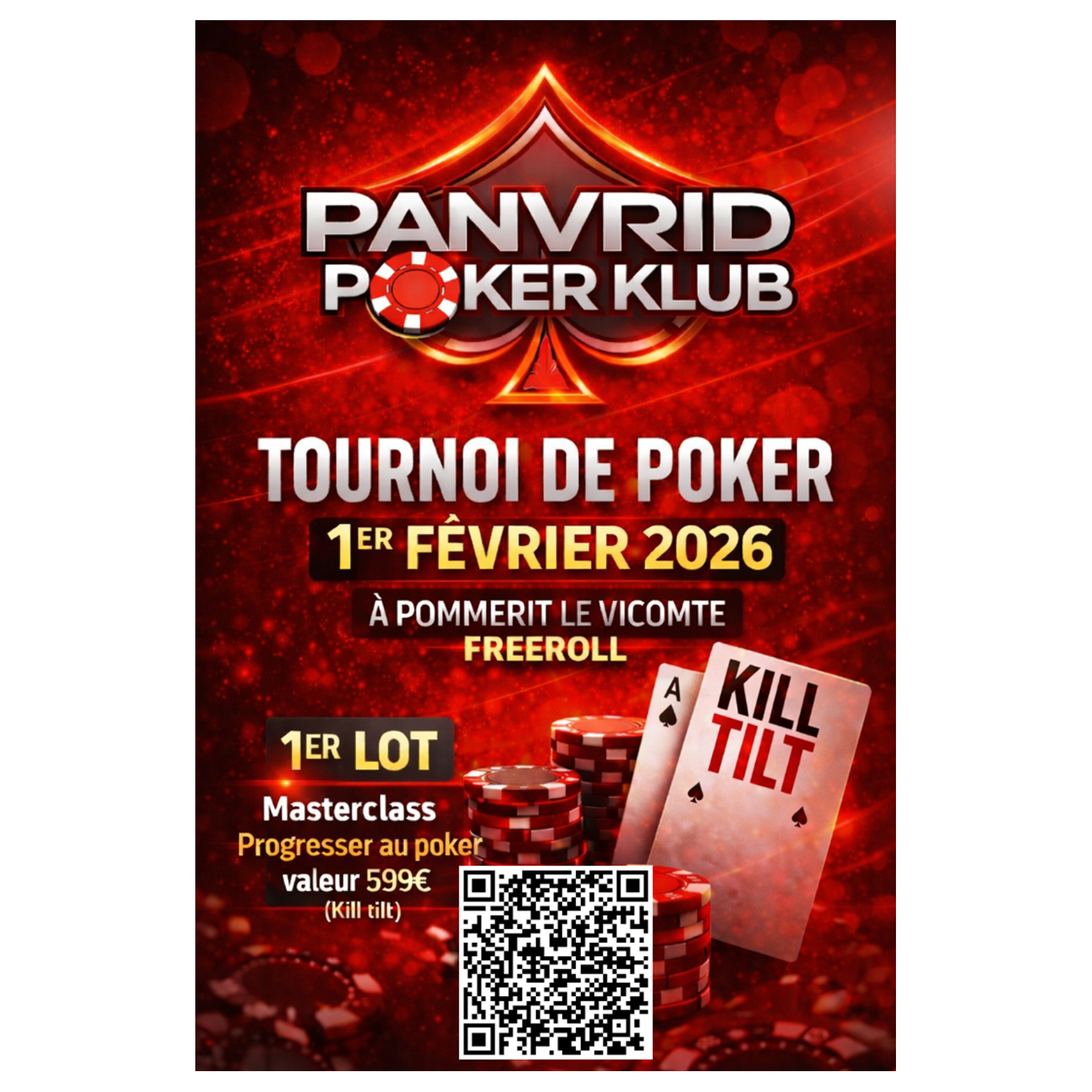 Inscription via le QR Code ou par mail : panvridpokerklub22@gmail.com